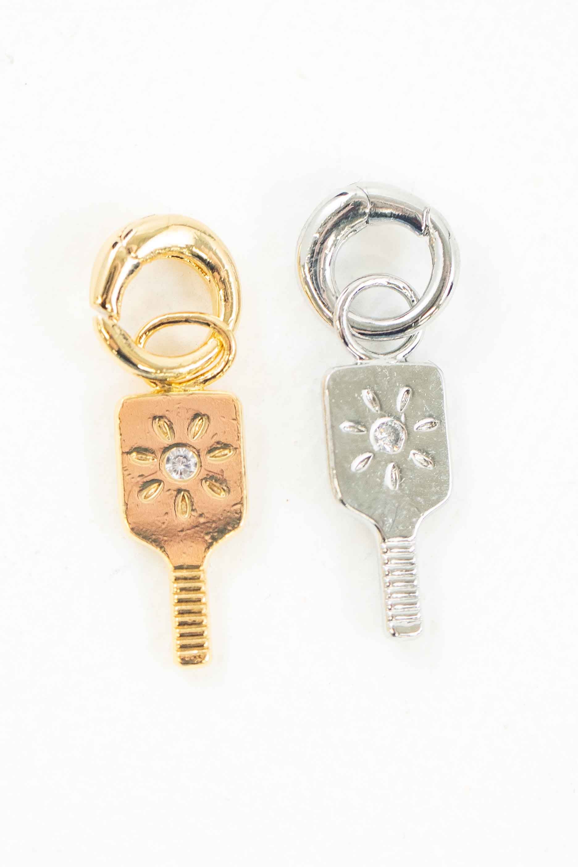 Add a pickleball paddle charm to your Base Chain Necklace in gold or silver, or Base Chain Bracelet in gold or silver. Each charm comes with a spring clip.