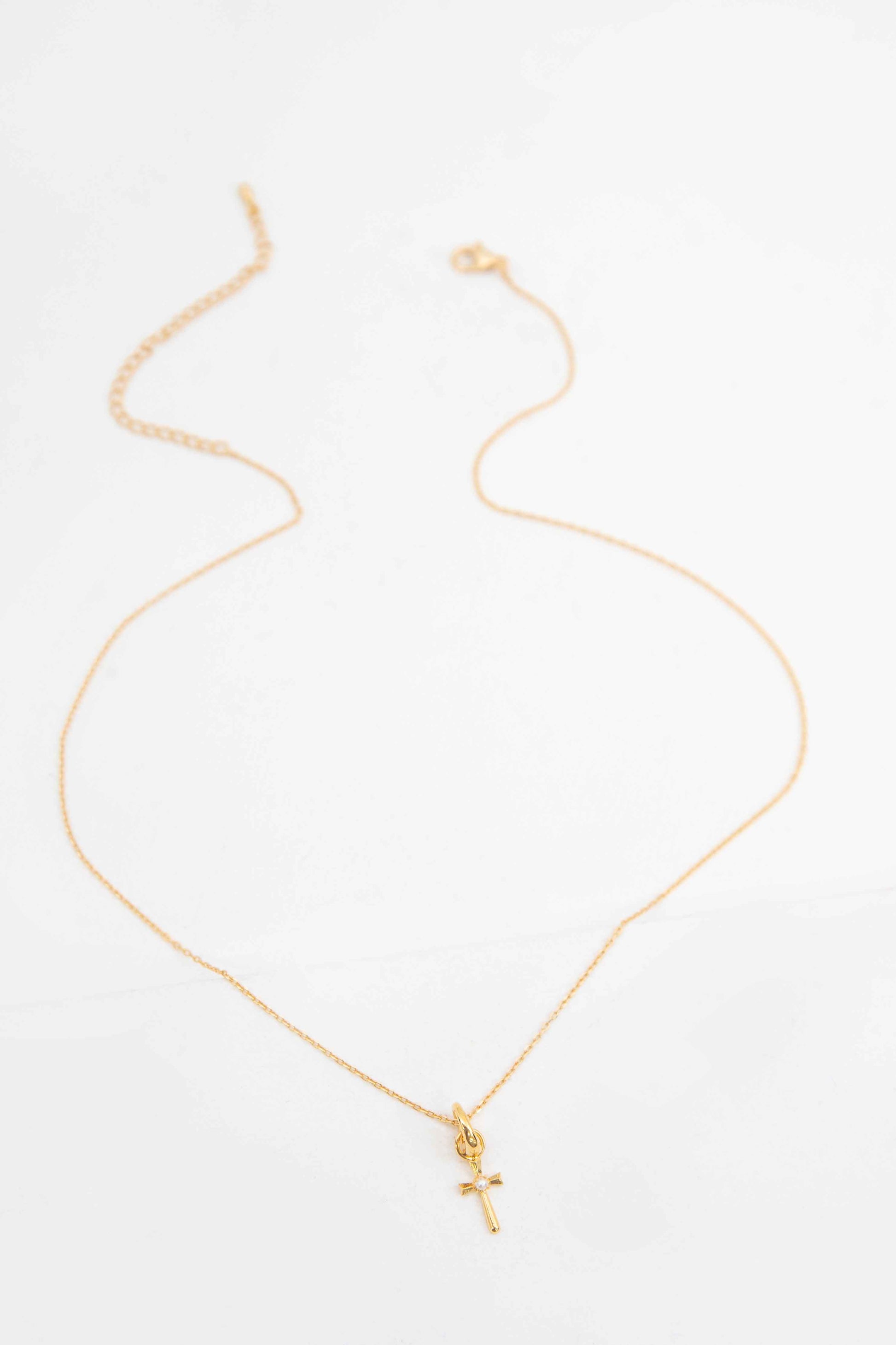Pearl Cross Charm Necklace | Gold