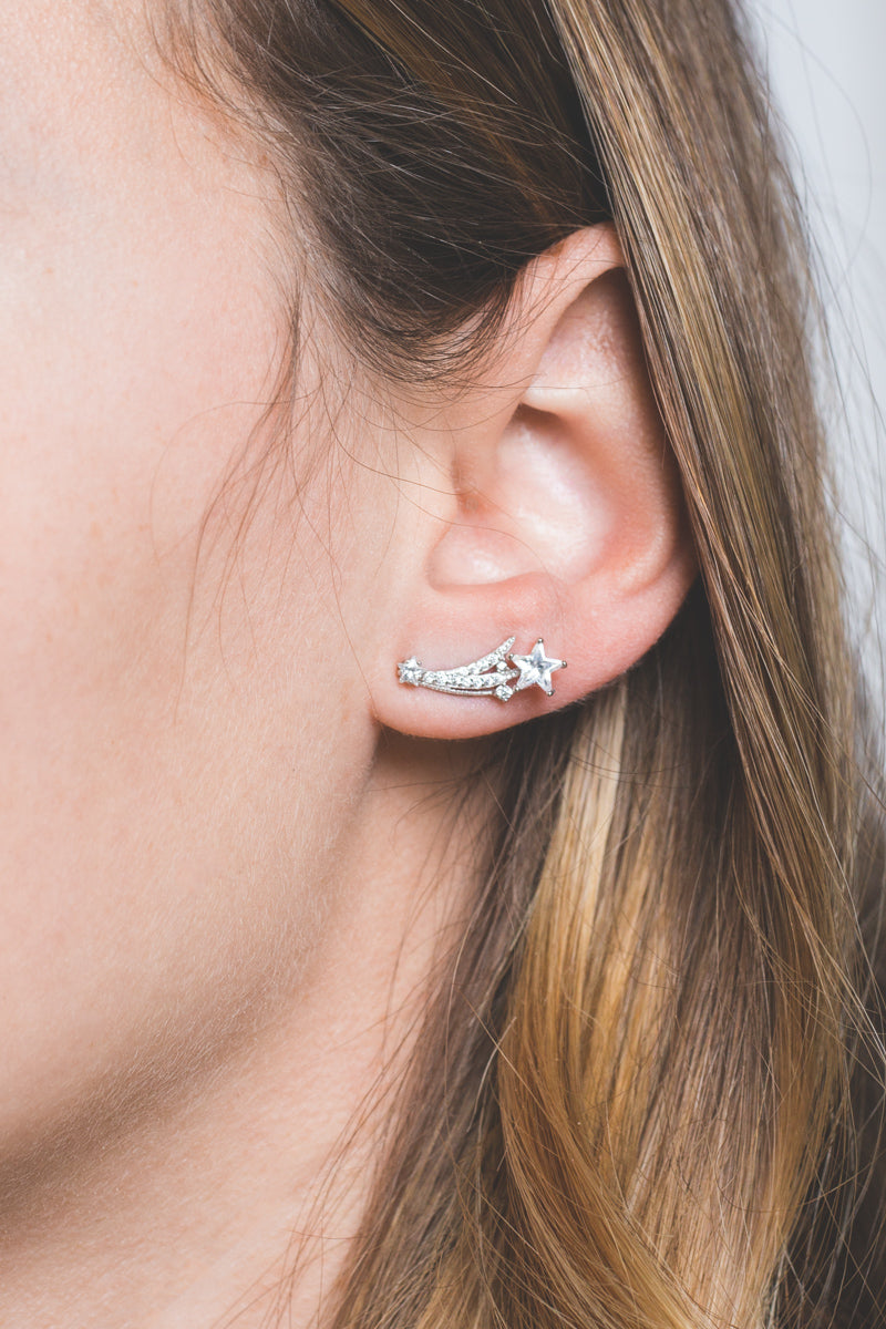 Shoot for the stars and that's just what we'll do with these brilliant shooting star stud earrings.